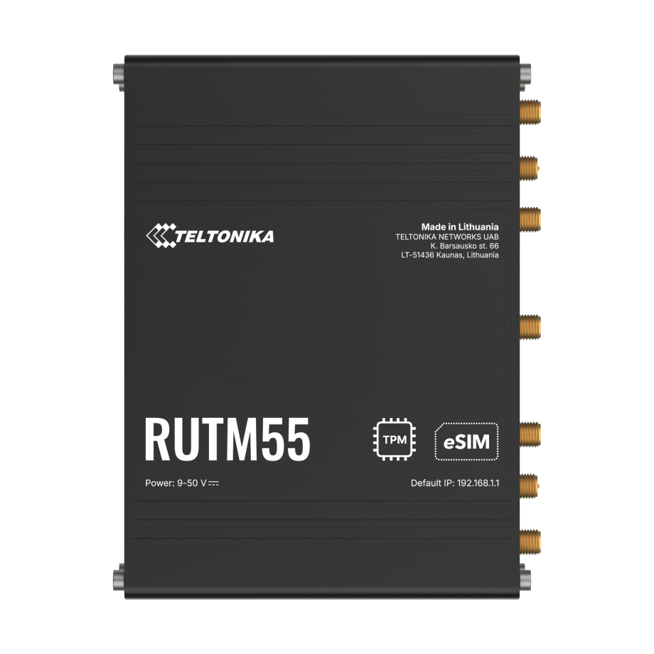 Teltonika RUTM55 on võimas tööstusliku taseme 5G-ruuter, mis on loodud pakkuma ülikiiret ja usaldusväärset ühendust nõudlike rakenduste jaoks. Seade on varustatud 5G Sub-6 GHz modemiga, mis toetab nii SA- kui ka NSA-arhitektuure, ning võimaldab allalaadimiskiirust kuni 3,4 Gbps ja üleslaadimiskiirust kuni 900 Mbps. Samuti toetab see LTE Cat 19 ja 3G tagavaravõimalust, tagades katkematu ühenduse erinevates võrgukeskkondades. Suurema varundatuse tagamiseks on ruuteril kaks SIM-kaardi pesa koos integreeritud eSIM-iga. See võimaldab automaatset operaatorite vahelist ümberlülitumist vastavalt signaali tugevusele, andmemahtude piirangutele, rändlustingimustele või ühenduse katkemistele. eSIM toetab kuni 7 profiili, võimaldades tsentraliseeritud kaugjuhtimist ilma füüsilise SIM-kaardi vahetamiseta.