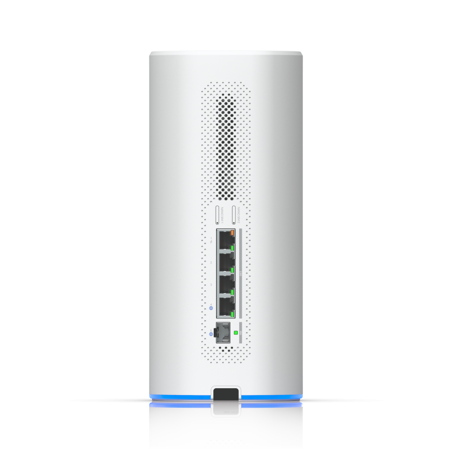 UniFi Dream Router 5G Max ühendab võimsa riistvara ja paindlikud ühendusvõimalused kompaktse lauaarvuti disainis. Seadmel on 4-portiline 2,5 GbE-lüliti, mis võimaldab mitme seadme kiiret traadiga ühendust, kusjuures üks port toetab Power over Etherneti funktsiooni 15,4 W võimsusega. See võimaldab ühilduvate seadmete, nagu juurdepääsupunktide või kaamerate, otsest toitmist ilma täiendavate toiteallikateta. Suure võimsusega üleslingide jaoks on seadmel 10G SFP+ port, mis tagab kiire ühenduse arenenud võrguinfrastruktuuri või koonduslülititega. See teeb seadme sobivaks keskkondadesse, mis nõuavad skaleeritavat ja tulevikuks valmis traadiga ühendust. Süsteem toetab kuni nelja WAN-ühendust, pakkudes paindlikkust koormuse jaotamise või varukoonduse konfiguratsioonide jaoks.